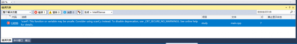 这段时间在学习C语言,首先想到用VisualStudio做IDE,果断下载了,书上使用的是scanf,但输进去就报错