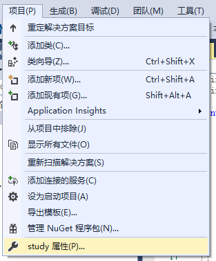 进入项目的属性列表